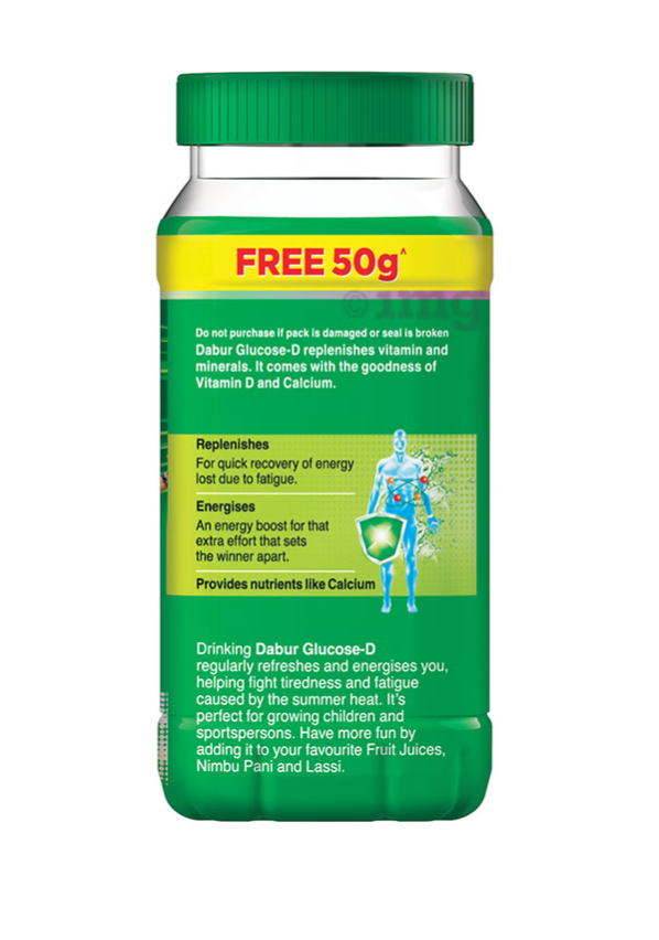 Dabur Glucose D Regular is an instant energy drink enriched with glucose and essential nutrients to provide quick energy and stamina. Ideal for students, athletes, and anyone needing an energy boost, it helps combat fatigue and keep you active throughout the day.