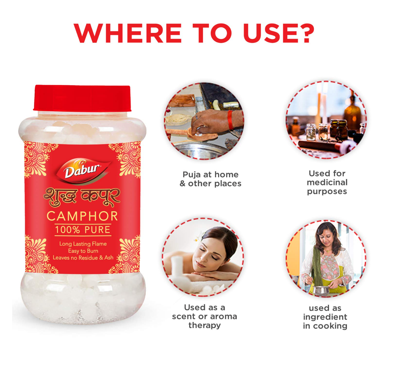 Dabur Sudh Kapoor is 100% pure camphor known for its soothing fragrance and purifying properties. Commonly used in pujas and aromatherapy, it helps create a peaceful, spiritual atmosphere while also repelling insects and cleansing the air.