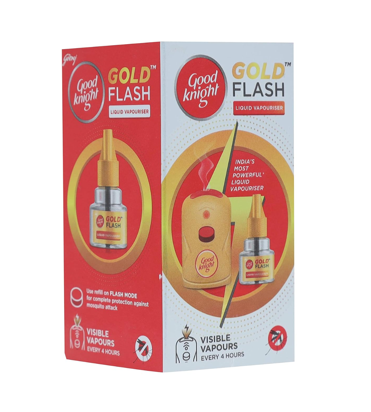 Good Knight Refill (45 ml) provides dual protection against mosquitoes with its powerful vapor action. The machine features a dual-mode switch—Normal and Activ+—to ensure effective protection both day and night.