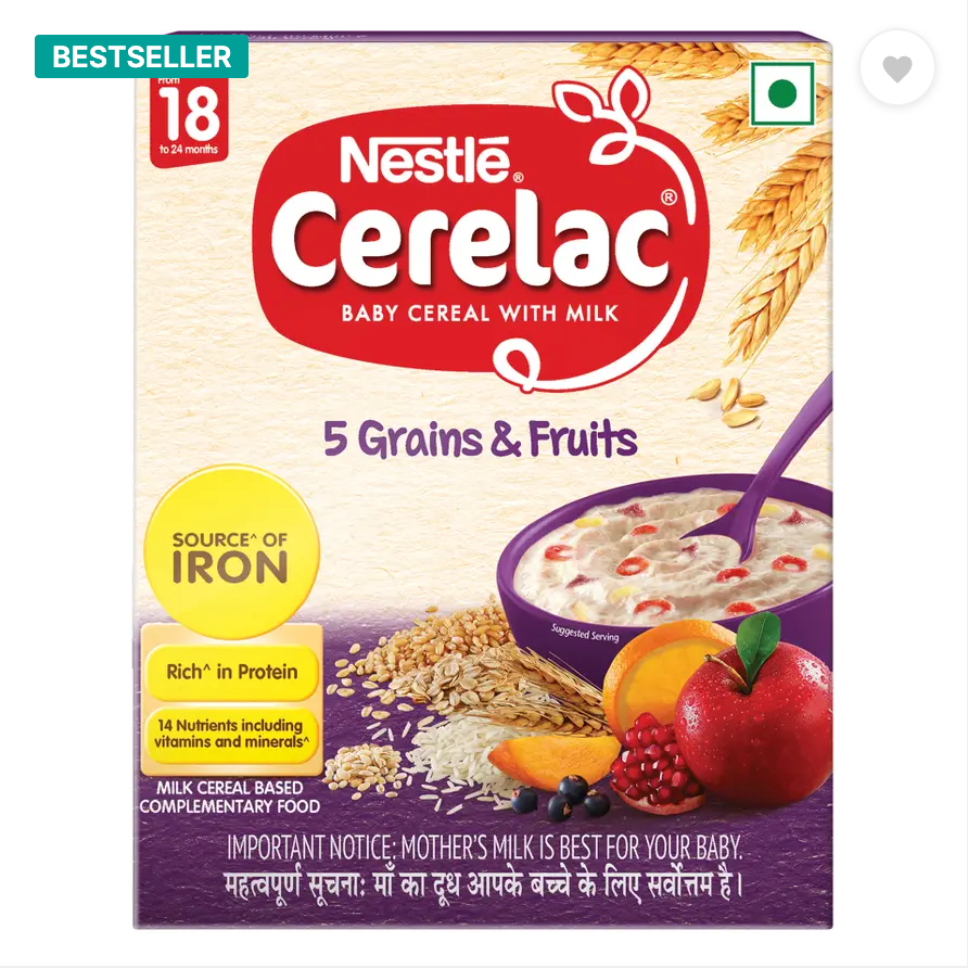 Nestle CERELAC Multigrain & Fruits is a complementary baby food for infants from 12 to 24 months. 2 serves of CERELAC Multigrain & Fruits Cereal provide 37% of a baby’s daily need of iron. It is also a source of 14 important nutrients including vitamins and minerals. This baby food cereal is rich in protein and packed with the goodness of cereal, milk, and fruits. With 155 years of scientific expertise in infant nutrition, Nestle develops infant nutrition products backed by evolving science and research. Innovation has been at the heart of Nestle since its beginning. Storage Instructions: After opening the pack, the contents should immediately be transferred to an empty, clean, dry and airtight container. After each use, replace lid tightly & store in a cool & dry place. Important Notice: Mother’s milk is best for your baby. Basic Recommended Dietary Allowance, ICMR 2020 & Recommended Nutrient Intake by WHO/FAO for a 1-3 year old child.Safety Warnings: Infant food should be used only on the advice of a health worker as to the need for its use and the proper method of its use. Infant food is not the sole source of nourishment for an infant. Use prepared feed within half an hour otherwise microbial deterioration may set in. Discard unused feed.