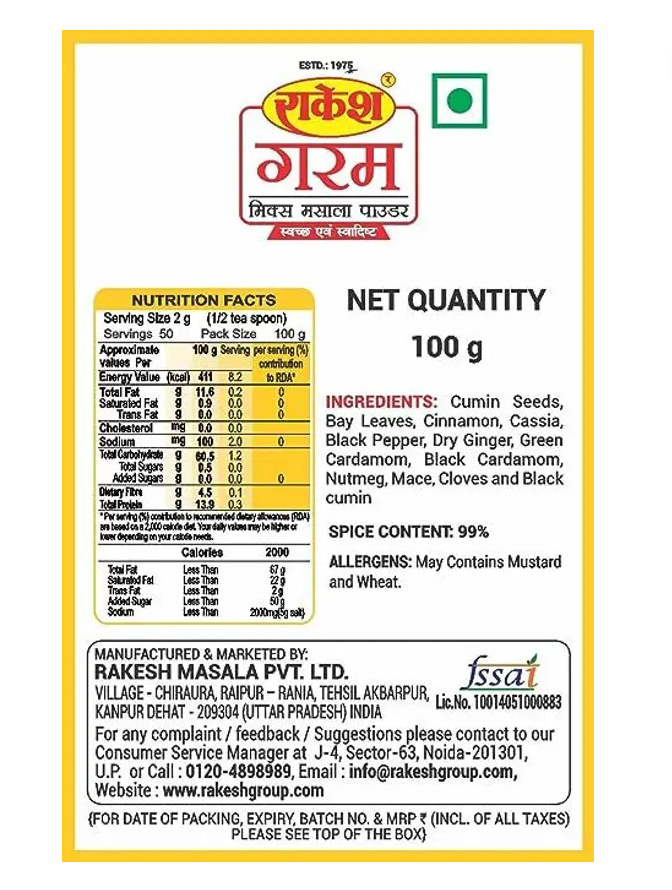 Rakesh Garam Masala is a premium blend of aromatic spices designed to enhance the flavor and aroma of curries, gravies, and vegetable dishes. Its rich, balanced taste makes it an essential spice for everyday Indian cooking.
