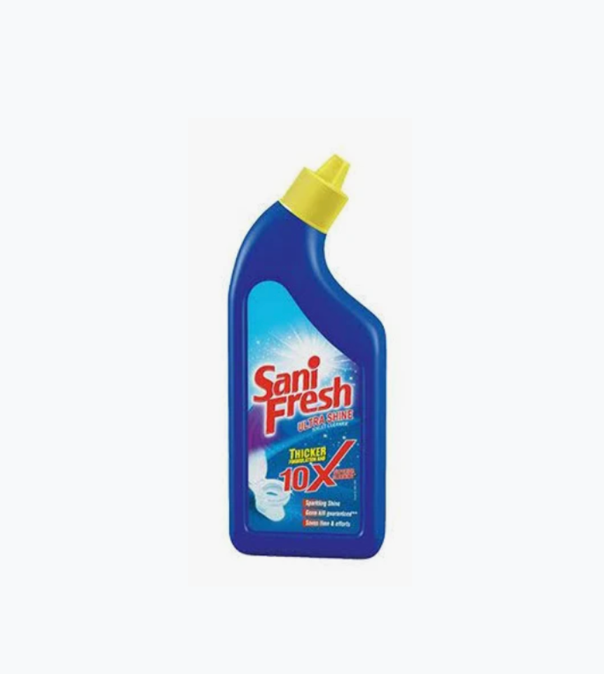 Sanifresh Toilet Cleaner — A powerful toilet cleaning solution that effectively removes tough stains, limescale, and germs. Its thick formula clings to the toilet bowl, ensuring deep cleaning and a refreshing fragrance. Keeps your toilet hygienically clean, sparkling white, and fresh with every use.