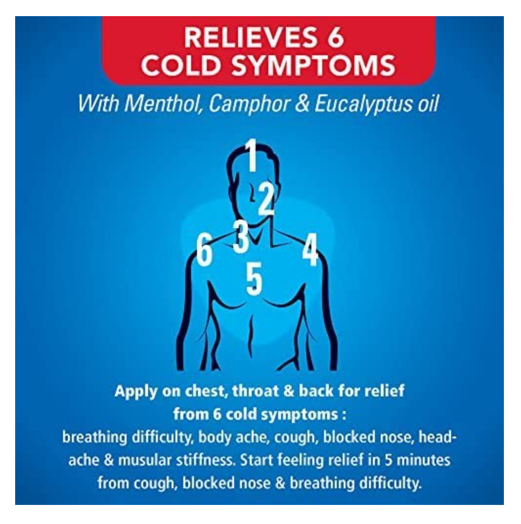 Vicks VapoRub — A trusted medicated ointment that provides fast relief from cough, cold, and nasal congestion. Its active ingredients, including menthol, camphor, and eucalyptus oil, soothe chest and throat, making breathing easier and helping you feel comfortable and refreshed.